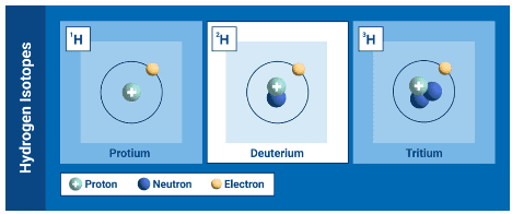 Nuclear fission typically uses uranium as the fuel source, specifically uranium (U-235) because its atoms are easily split apart. However, U-235 is relatively rare, at just over 0.7% of natural uranium. [6] In contrast, most fusion reactor concepts currently under development use a plentiful and easily accessible fuel source: a mixture of deuterium and tritium (hydrogen isotopes that contain extra neutrons). Deuterium can be extracted inexpensively from seawater, and tritium can potentially be produced from the reaction of fusion generated neutrons with naturally abundant lithium. [7]